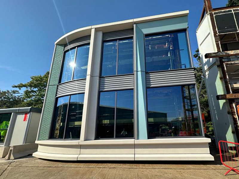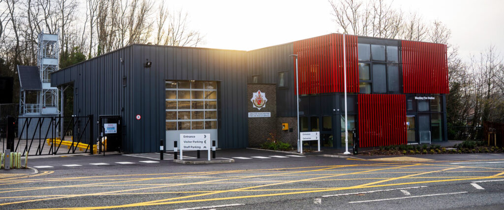 High gloss powder coating, although less commonplace than matt, can significantly enhance visual appearance. We’ve seen this on projects like Blakely Fire Station, where the red façade forms part of the overall design but is not the main focal point.